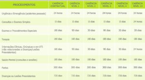 Confira tabéla completa de carências: